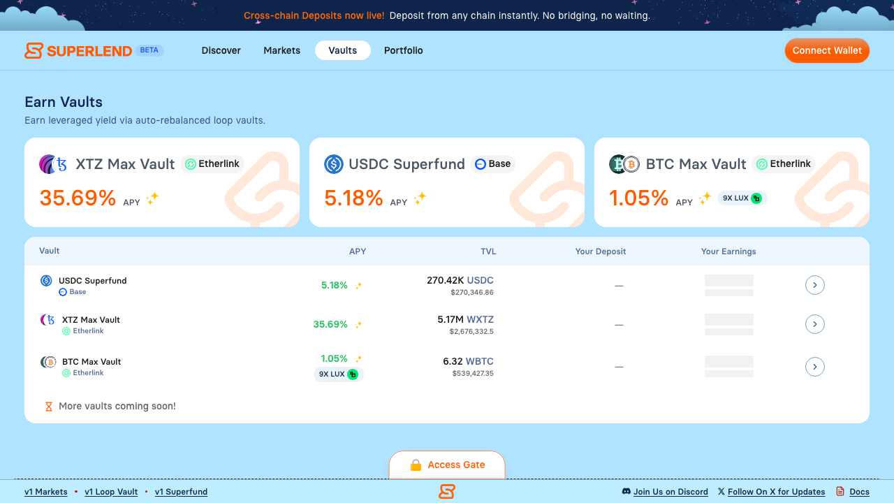 Explore yield strategies in the Vaults section on Superlend